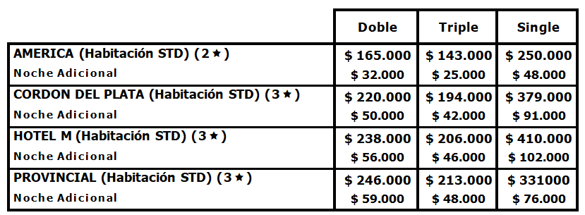 Tarifas por persona válidas para pagos en efectivo o transferencia bancaria, sujetas a disponibilidad y modificación. VALIDEZ 01/01 AL 28/02-2026, (excepto feriados). Seña y Saldo a informar.